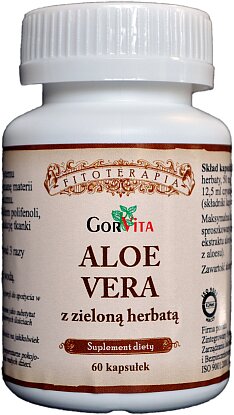 200 mg sproszkowanych liści zielonej herbaty, 50 mg ekstraktu aloe vera 200:1 ( odpowiada 12,5 ml czystego soku z aloesu), substancje pomocnicze (składniki kapsułki: żelatyna, barwnik naturalny- chlorofil).