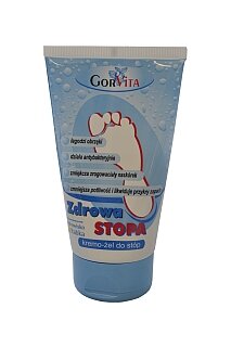 Zdrowa stopa to preparat opracowany na bazie naturalnych olejków ekstraktów: aloesu, pichty, mięty, szałwii, lawendy, nagietka, z drzewa herbacianego oraz wody leczniczej o wysokiej zawartości pierwiastków m.in. jodu, manganu i cynku. Składniki te wykazują działanie oczyszczające, antybakteryjne i odświeżające. Zmniejszają opuchnięcia, nadmierną potliwość, neutralizują zapach potu. Preparat przeznaczony jest do codziennej pielęgnacji skóry stóp skłonnej do pęknięć, otarć i podrażnień. Stosowany regularnie zapobiega maceracji naskórka oraz zmianom pomiędzy palcami, jednocześnie nawilża i uelastycznia skórę.