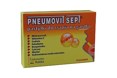 Składniki: Cukier 2,8 g, syrop glukozowy 1,2 g, woda mineralna z obszaru górniczego Uzdrowiska Rabka 330 mg, miód pszczeli 100 mg, witamina C 15 mg ( L- askorbinian sodu) (18,75%)*, maltodekstryna –nośnik, kwas cytrynowy (regulator kwasowości), mentol 3,3 mg, olejek cytrynowy 1,6 mg, olejek szałwiowy 1,6 mg, olejek eukaliptusowy 1,6 mg, olejek bergamotowy 0,6 mg.